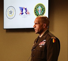 Roy briefs Carroll College ROTC Cadets on the Army PaYS program